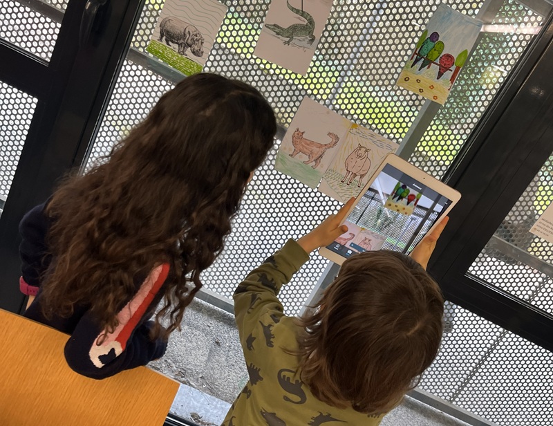 • Puis, ils colorieront et personnaliserons leurs cartes de papier avec l’aide des adultes avant de… les sonoriser en réalité augmentée et de les exposer dans la salle d’animation.